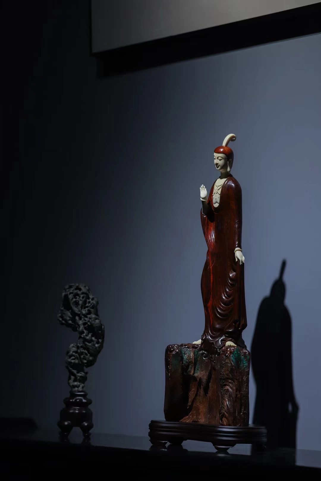雕刻简净练达,立形修长秀美,工品隽永,神姿飘逸