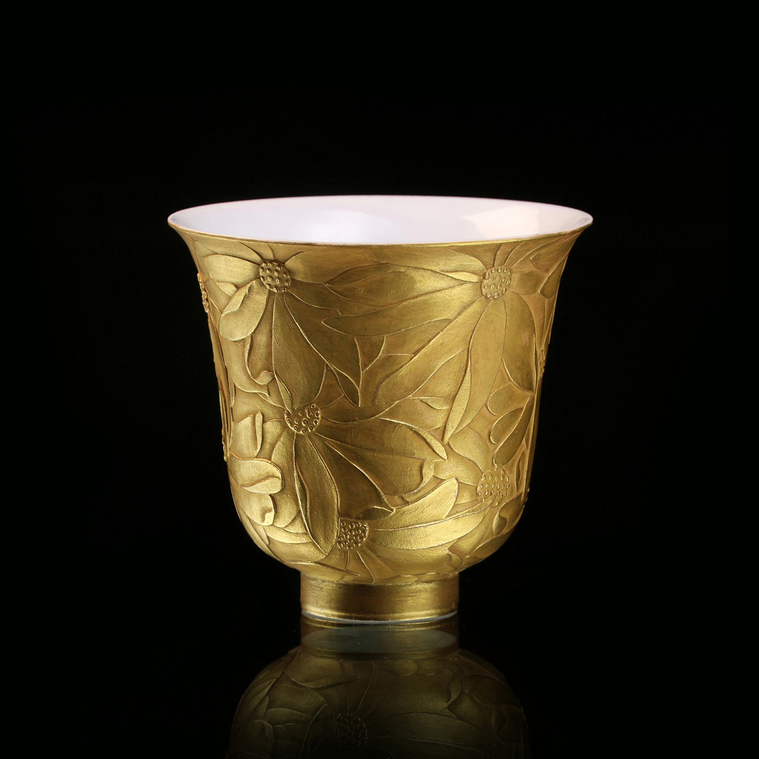 茶与器,相濡以沫 淳香的茶,盛放于相得益彰的器皿中才显得圆满。 手雕满花披金杯 精美的茶器,也只有经过茶香的滋润,生命才算完整。 茶与器,搭配出最温暖的记忆,而我们用唇齿来感受他们共同带来的温暖和亲切。 器物因被使用而美,美则惹人喜爱,人因喜爱而更频繁使用,彼此温暖。 器物不设答案,重要的是使用者,端正了喝茶的心,就拥抱了茶的滋味。 我们试图通过茶与器,茶与人,人与器,相互之间关系的故事,端捧对话,相濡以沫。 包 裝