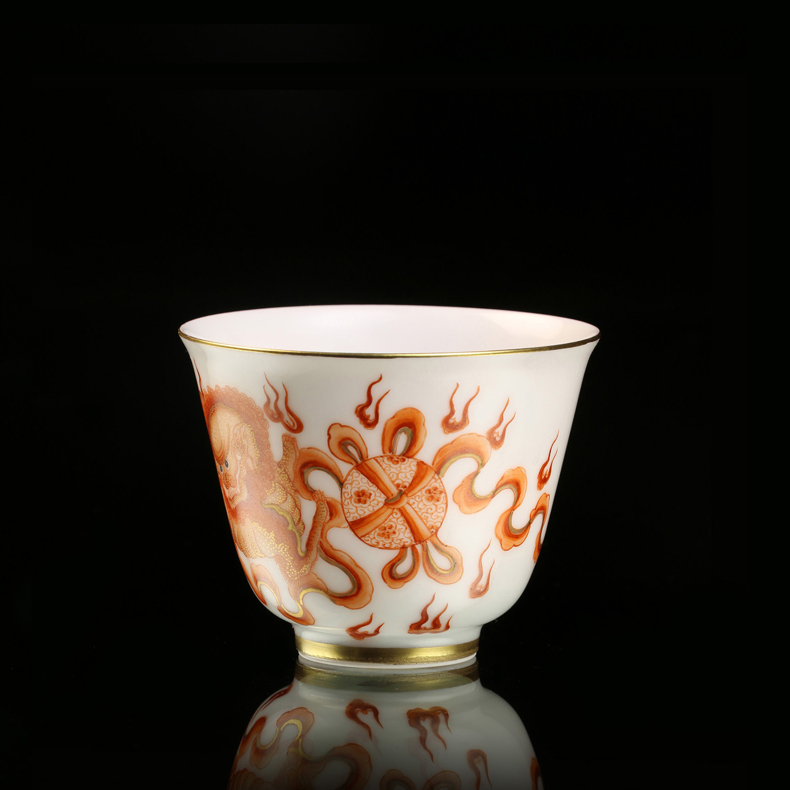意与器,相载相承 矾红点金狮舞大吉杯 中国的历史文化,源远流长。 祖先创造了很多纹样艺术,不仅造型别致,而且纹样独特,实用美观。 无论是建筑、绘画,还是瓷器、金银器、竹木器等,每种纹样都有其独特的魅力,亦寄托了人们祈福的愿望。 狮滚绣球,好运连连之意。是艺术与茶具碰撞出的佳作。 吉语和图案蕴含着人对生活的追求,记录着一个民族悠久的历史文化和多姿多彩的民俗风情。 它融历史、文学、民俗、美学于一体,把中国传统文化和人物的审美情趣完美的结合起来。 一件器物,充盈着那么多的美好寓意。 包 裝