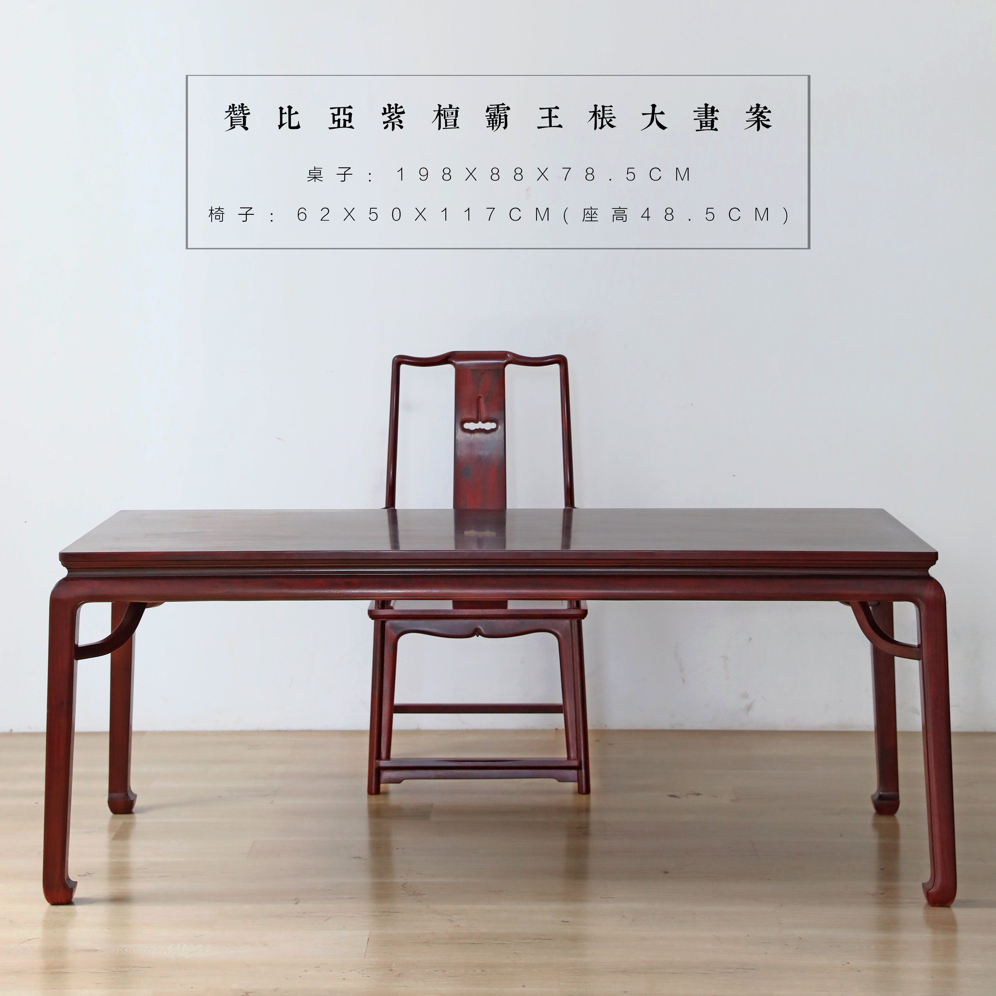 桌面以闷榫攒边打槽装板,抹头大边等宽。冰盘沿线脚上舒下敛,束腰,牙条和四腿以抱肩榫拍合,腿边及牙条起线,装饰简洁而内敛。四腿安弯弧有力的霸王枨以固,无缀饰,线条舒朗流畅,一气呵成,又颇灵动,婉转曲直。