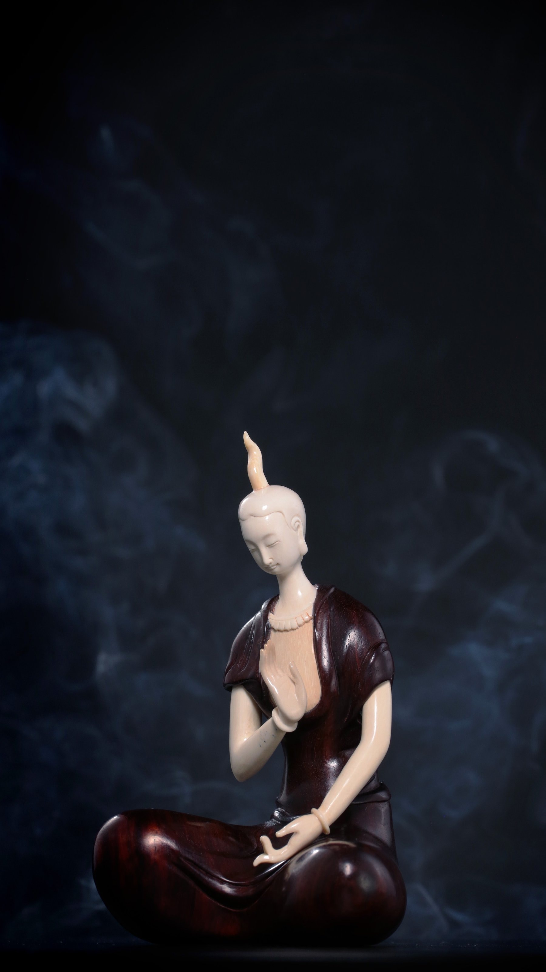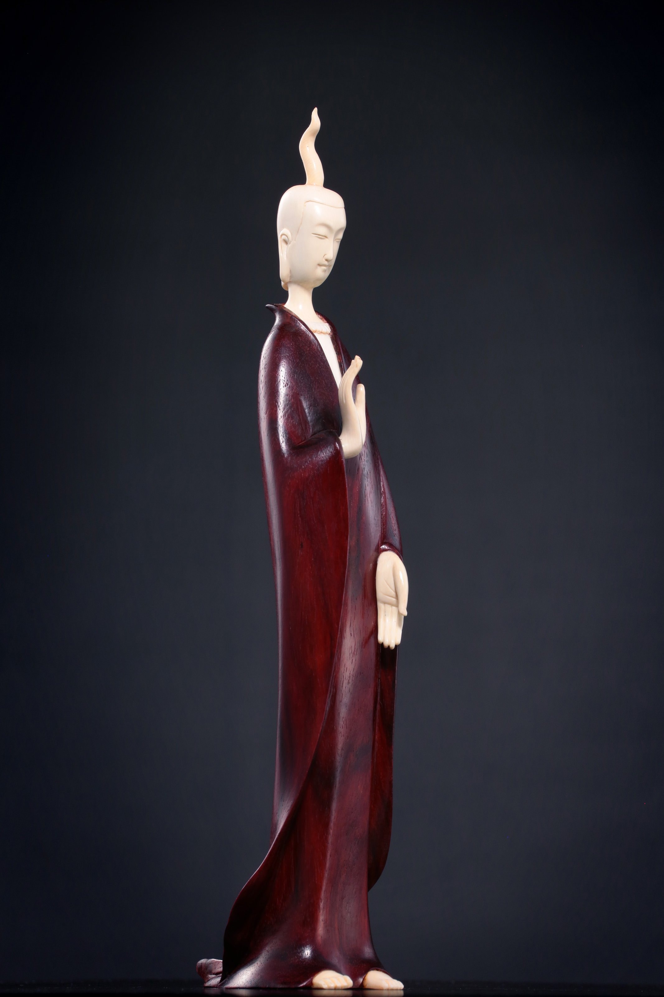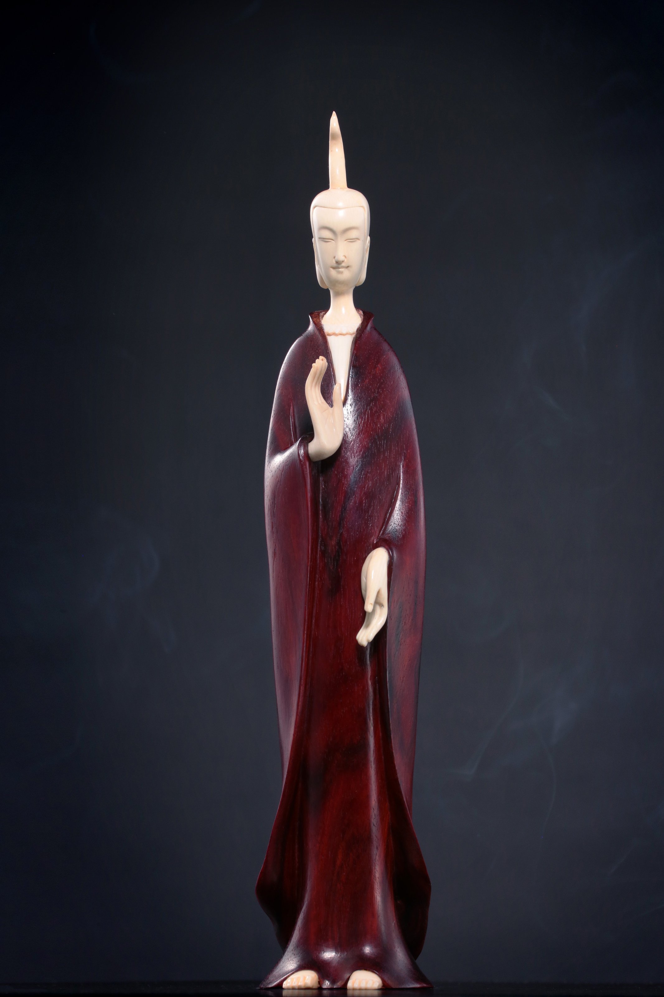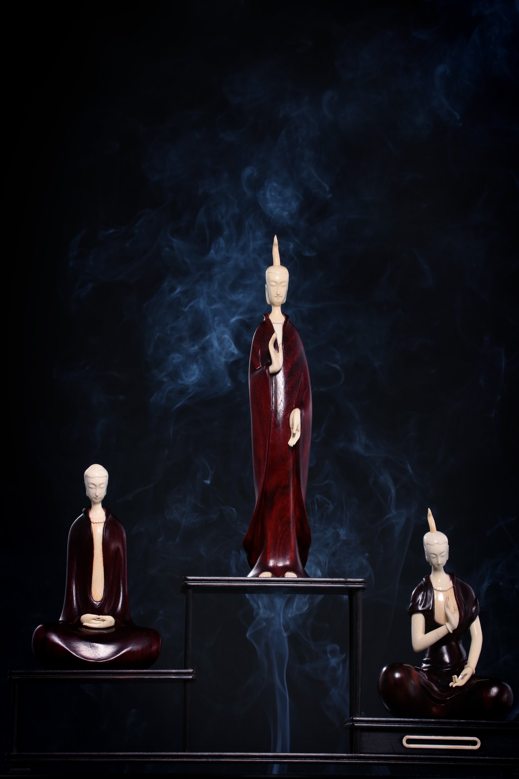 坐禅:高13cm长8.5cm宽5cm听禅:高13cm长8cm宽7cm行禅:高23cm长7.5cm宽5.5cm材质:猛犸牙,印度小叶紫檀 三圣|印度小紫檀嵌万年猛犸 行亦禅,坐亦禅,听亦禅 心无挂碍,自得菩提……