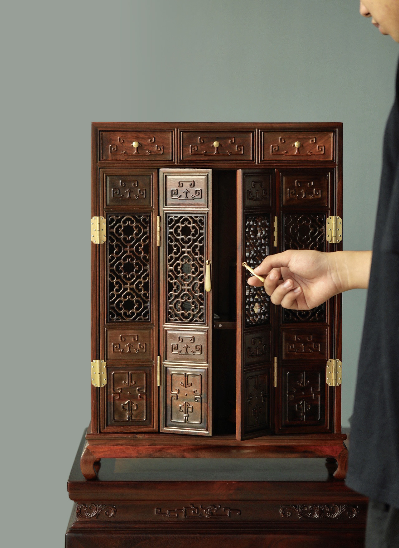 顶部带三小抽屉,柜内有隔层,储物空间大。