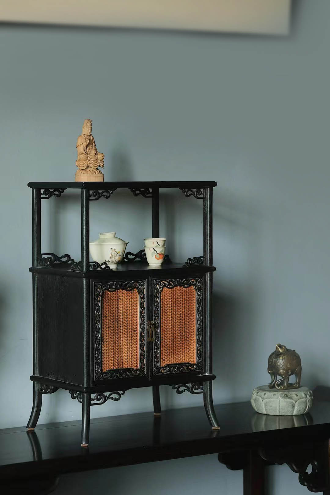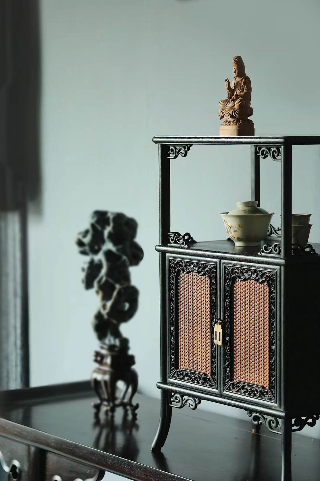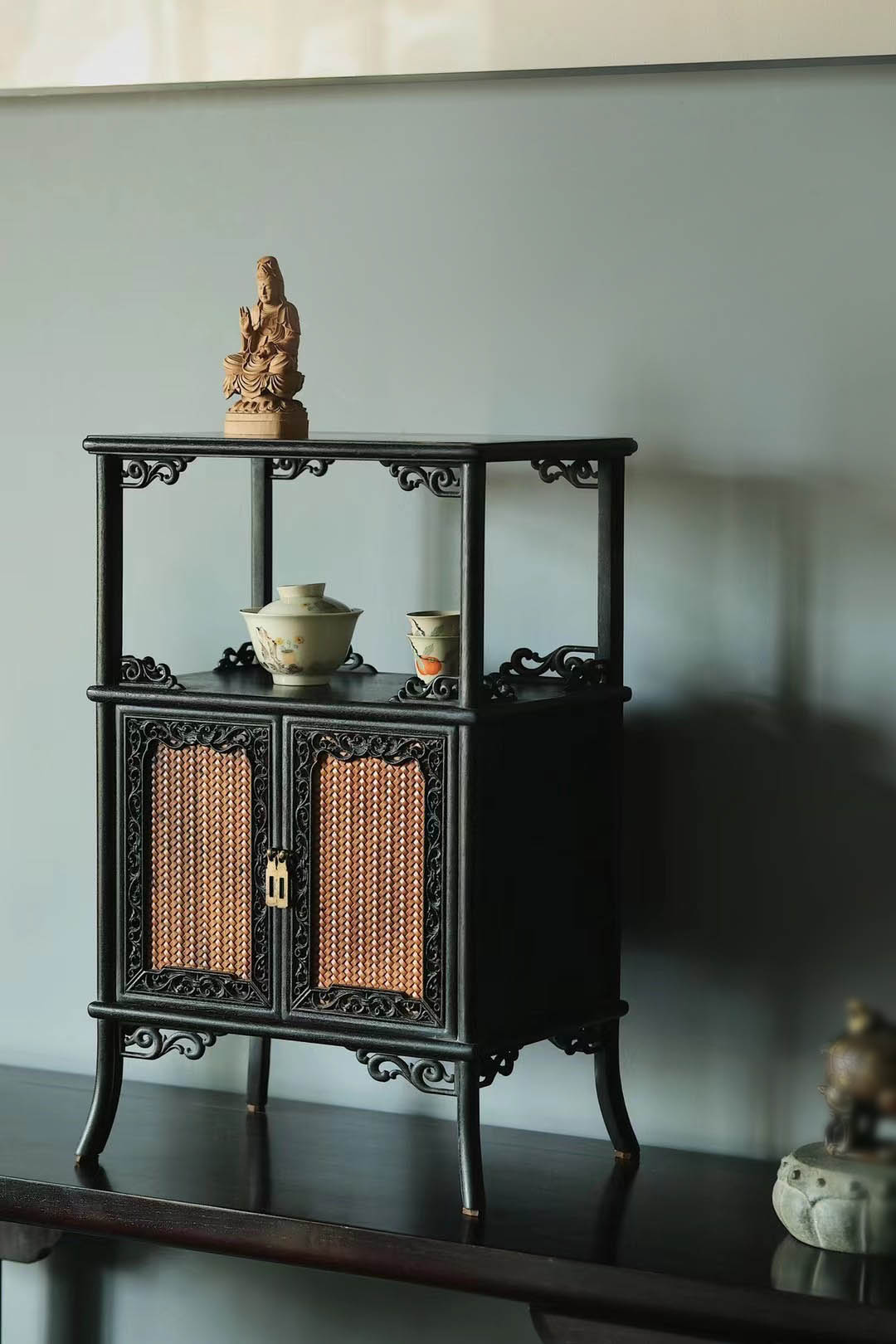 血檀仿古黄杨木亮格茶柜
