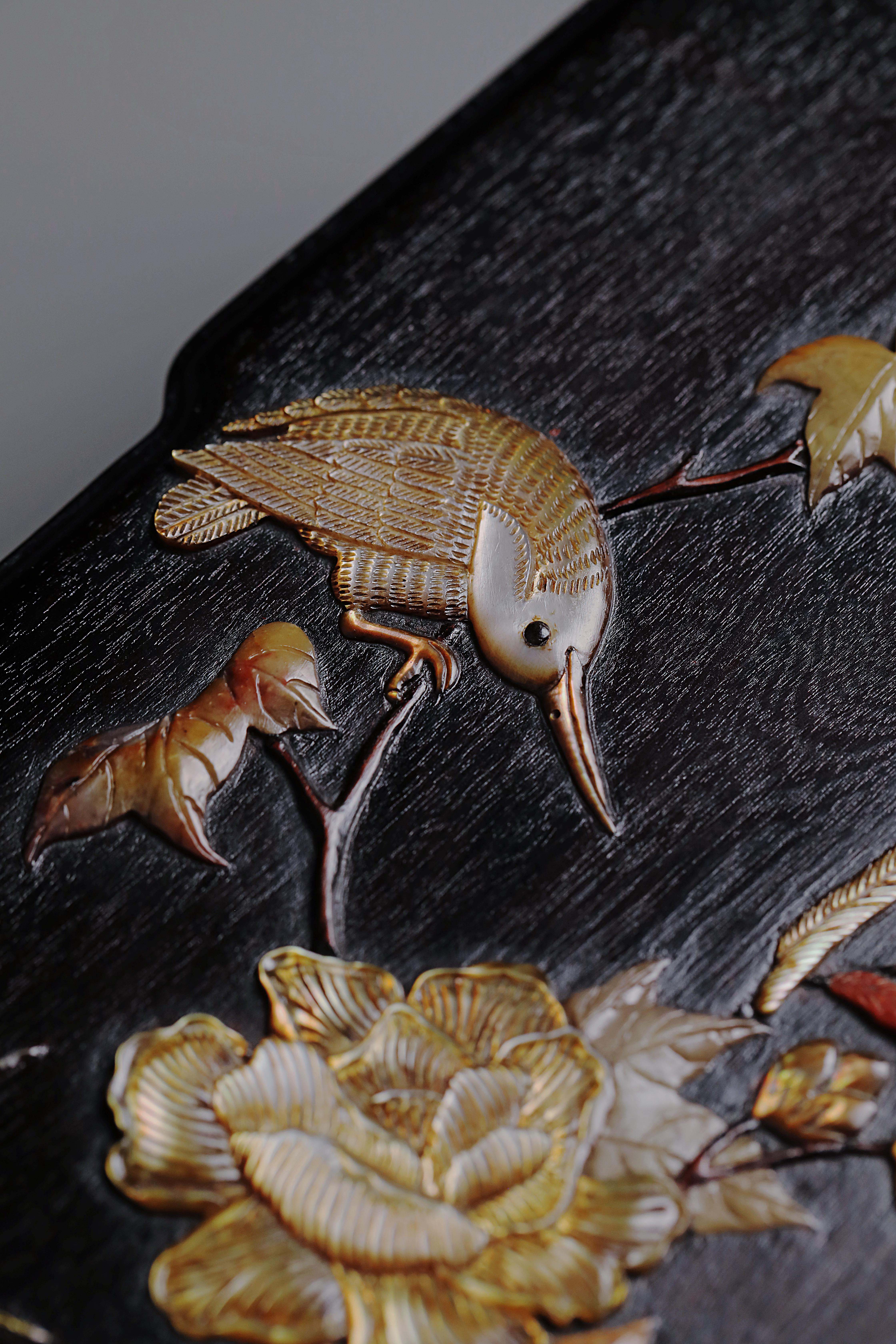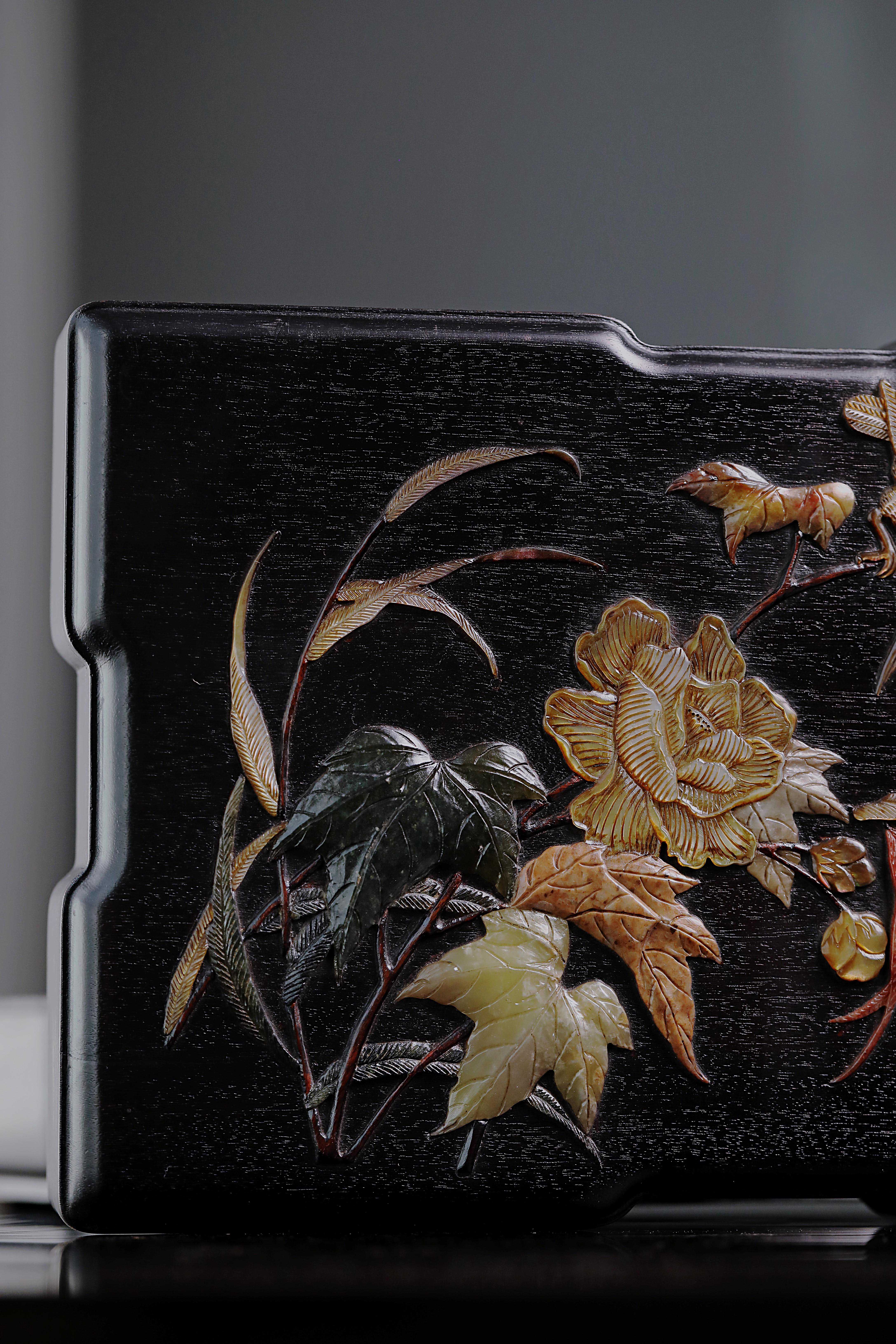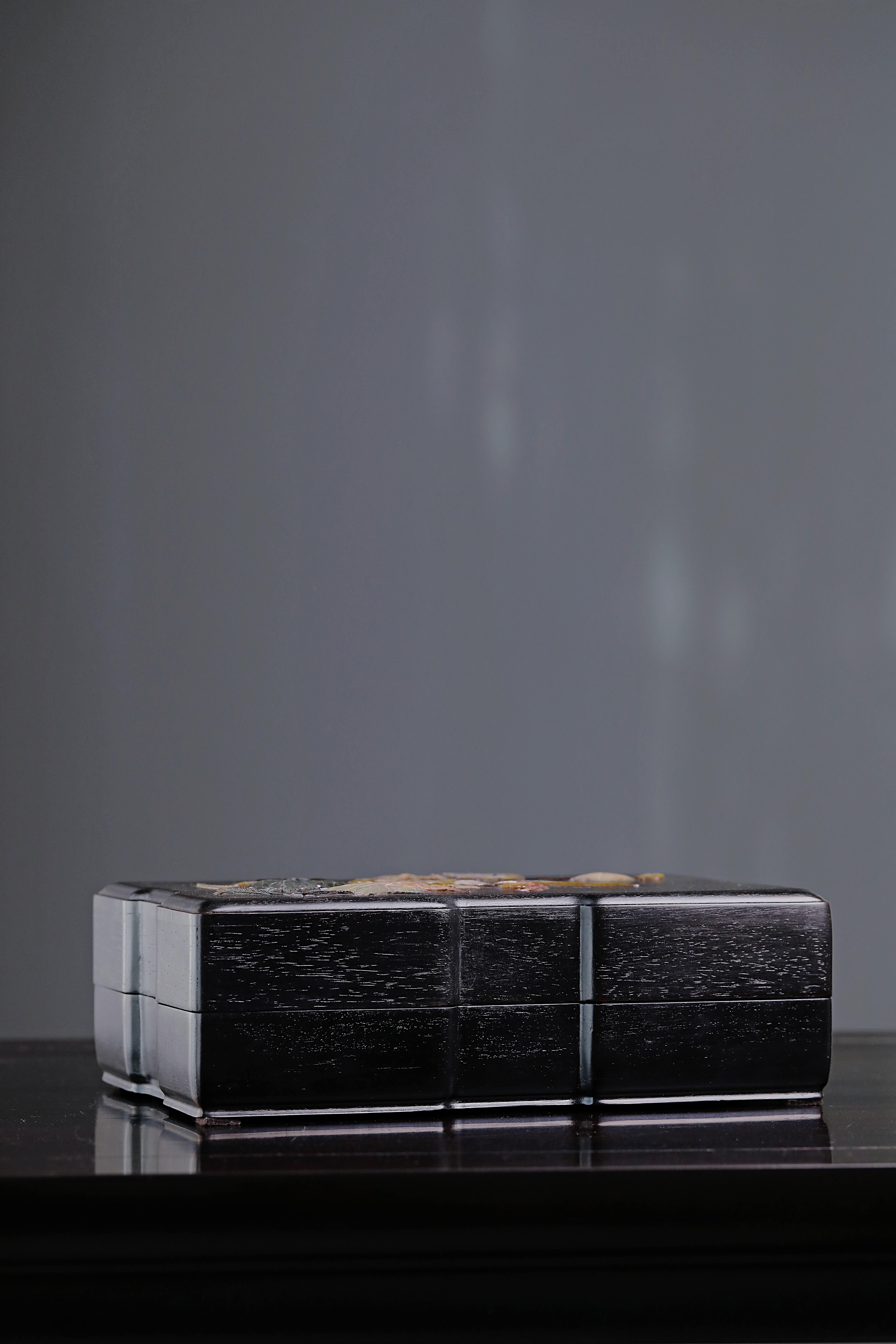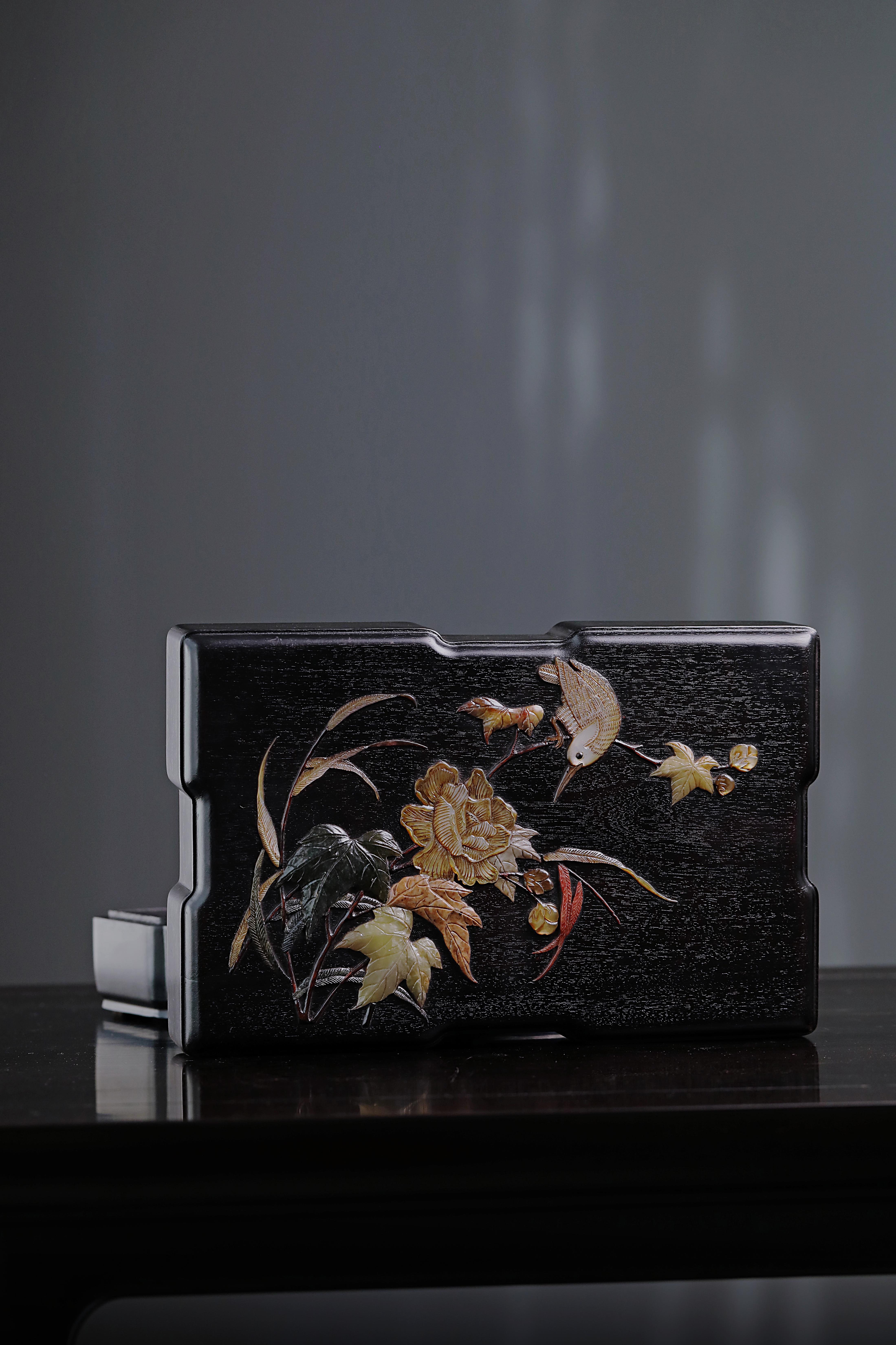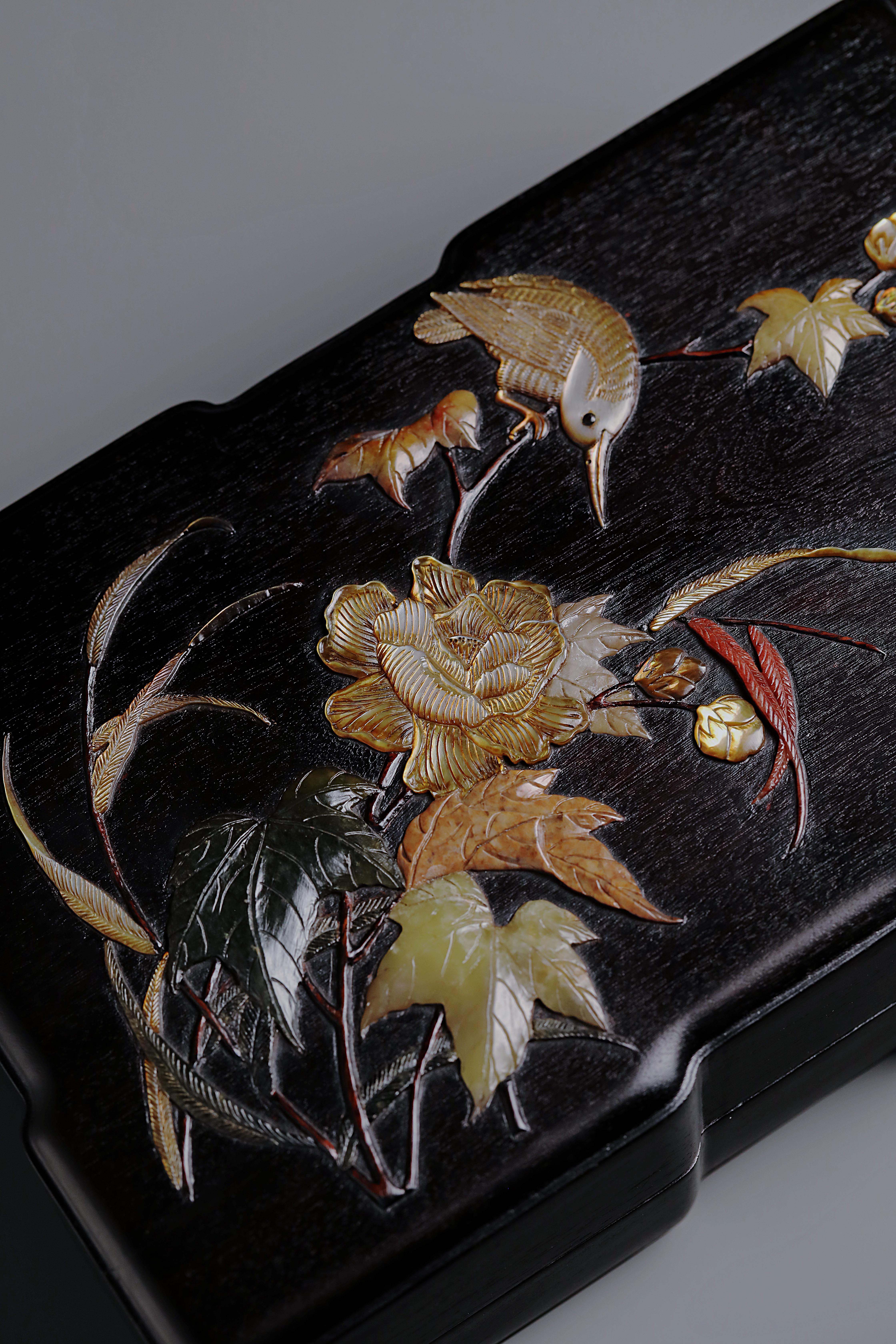 紫光檀百宝嵌花鸟纹文具盒