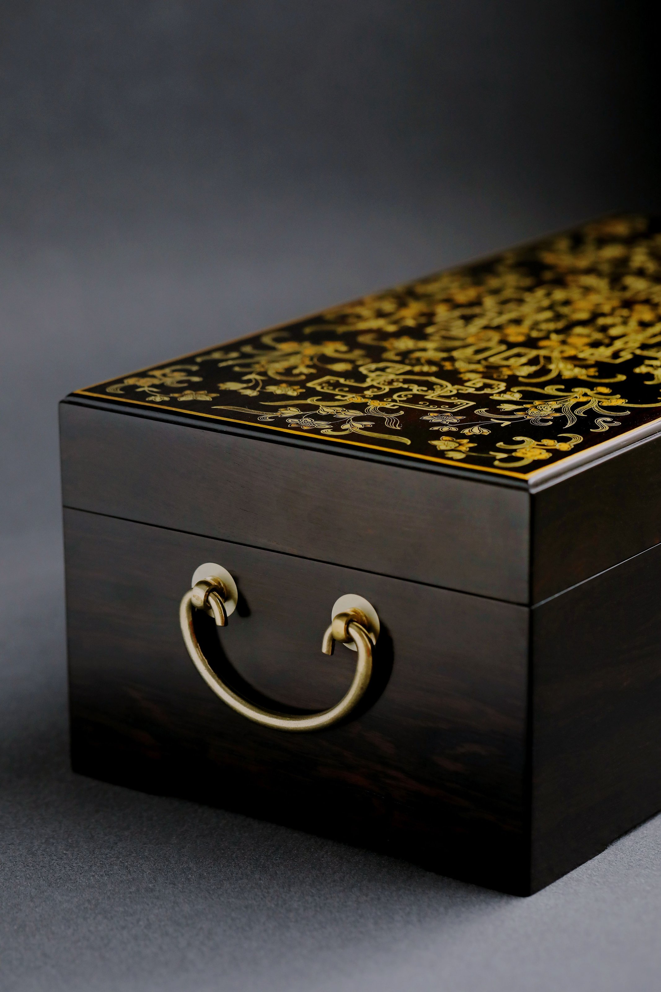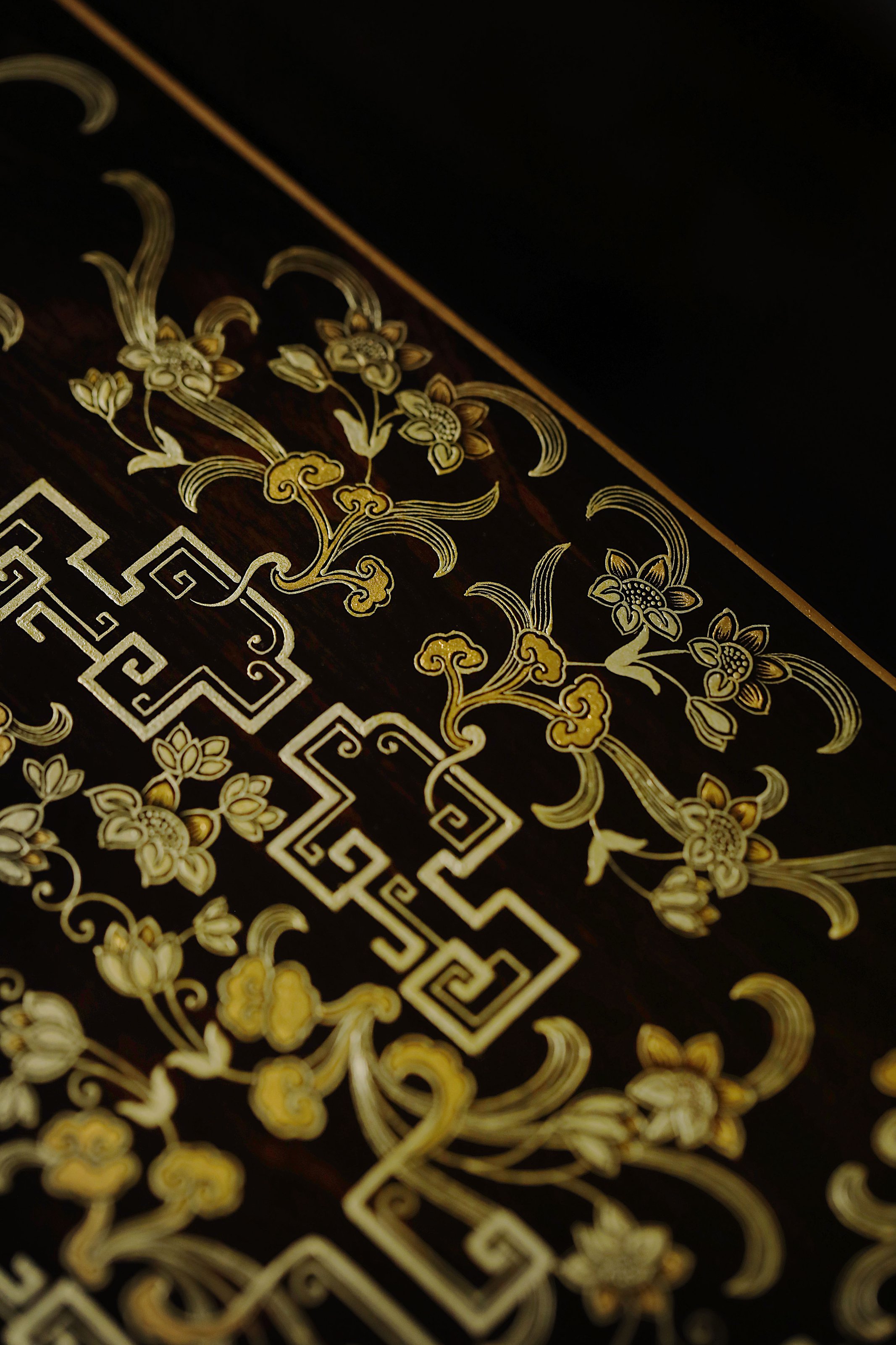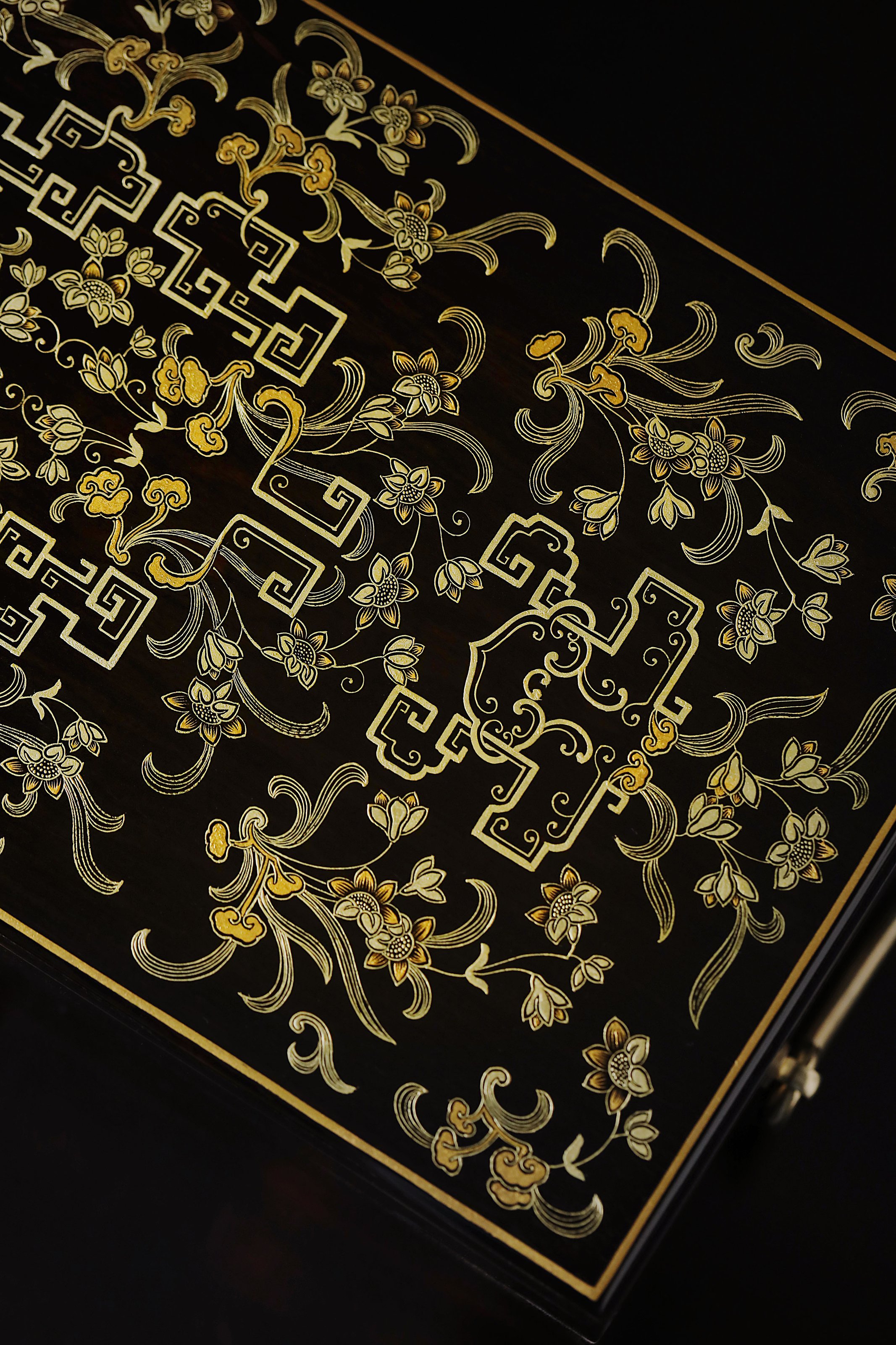 手工描金灵芝如意图,缠枝环绕错落有致,金碧璀璨;