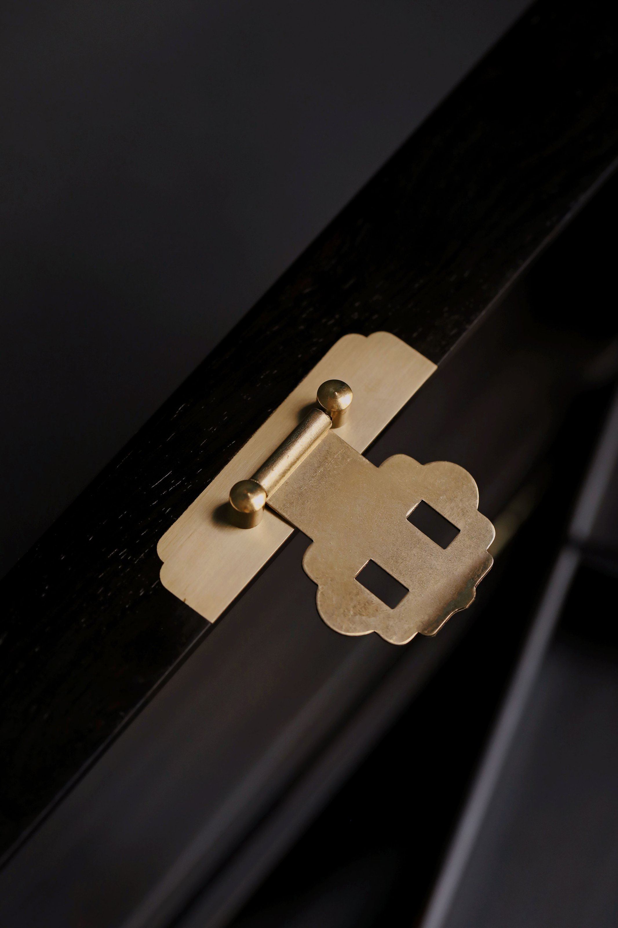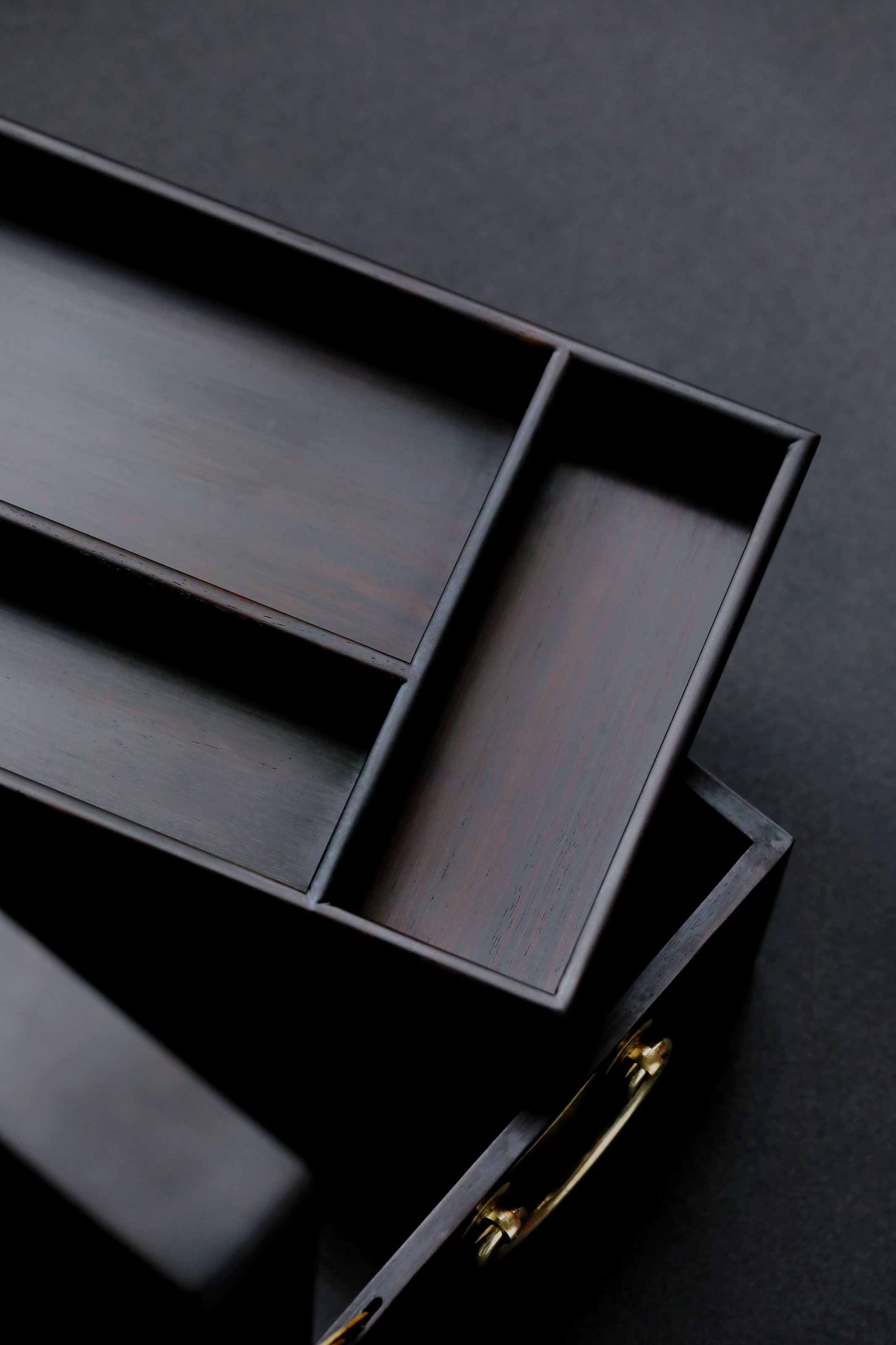 整器紫光檀制作,纹理细腻,结实耐用,榫卯结构。正面精致内嵌铜件,古典雅致。