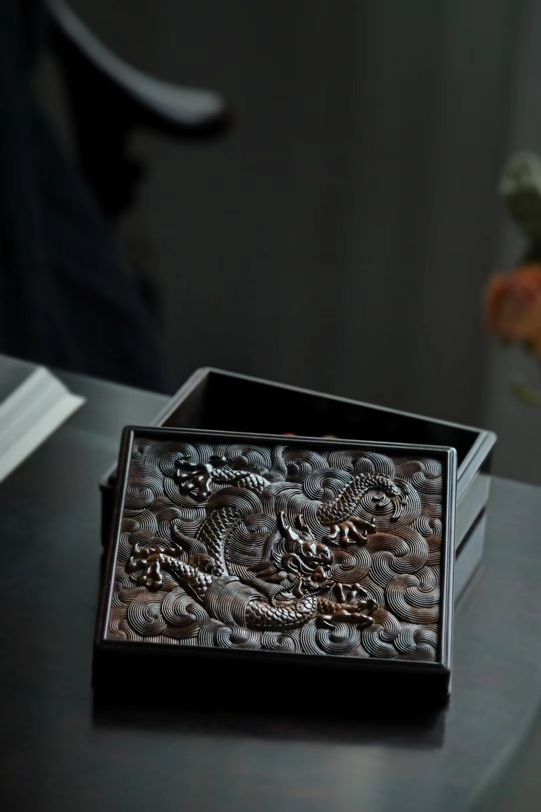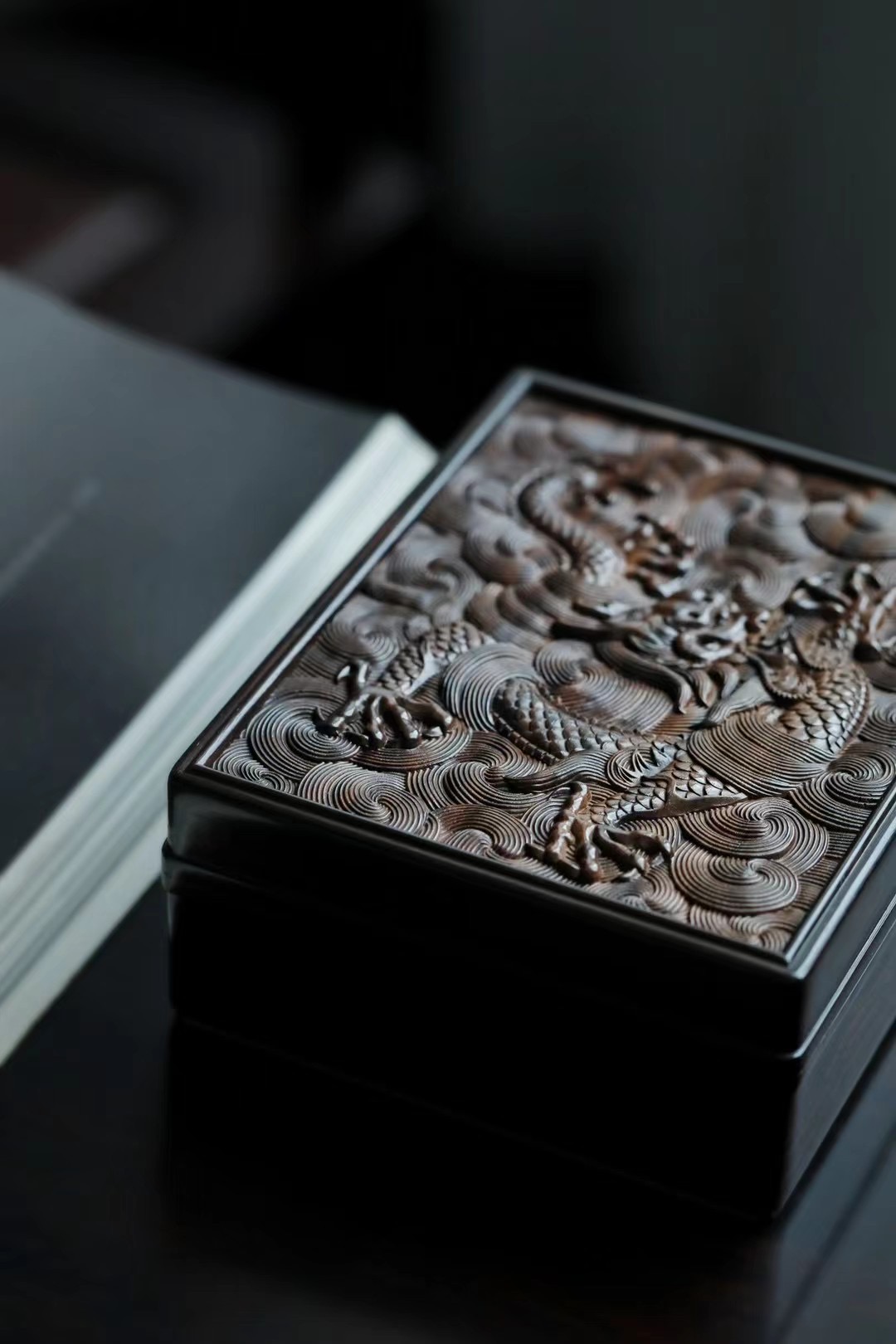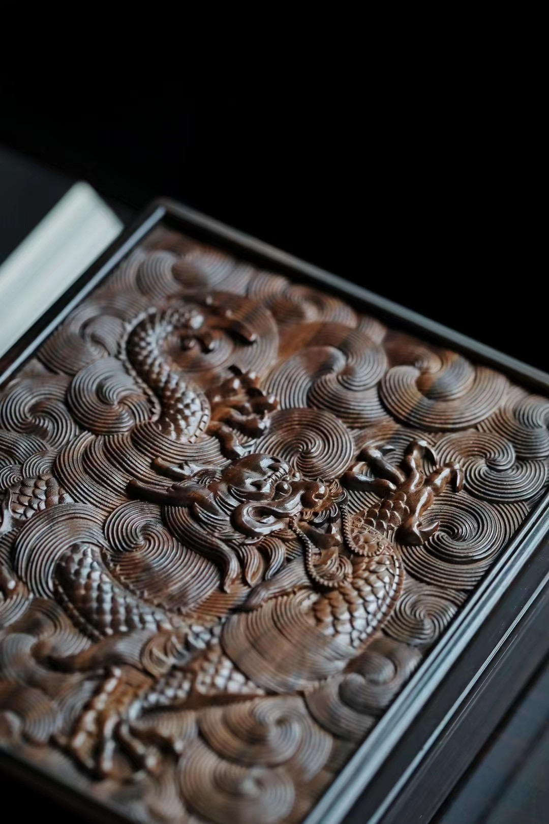 长:14.2cm 宽:11.6cm 厚度:5.6cm材料:紫光檀 龙腾万里茶盒|紫光檀 苍龙腾云,非云足不踏,举则冲天翔,雕刻栩栩如生, 祥云纹环绕,繁而不乱,文房茶室雅物。 尺寸:长14.2cm 宽11.6cm 厚度5.6cm