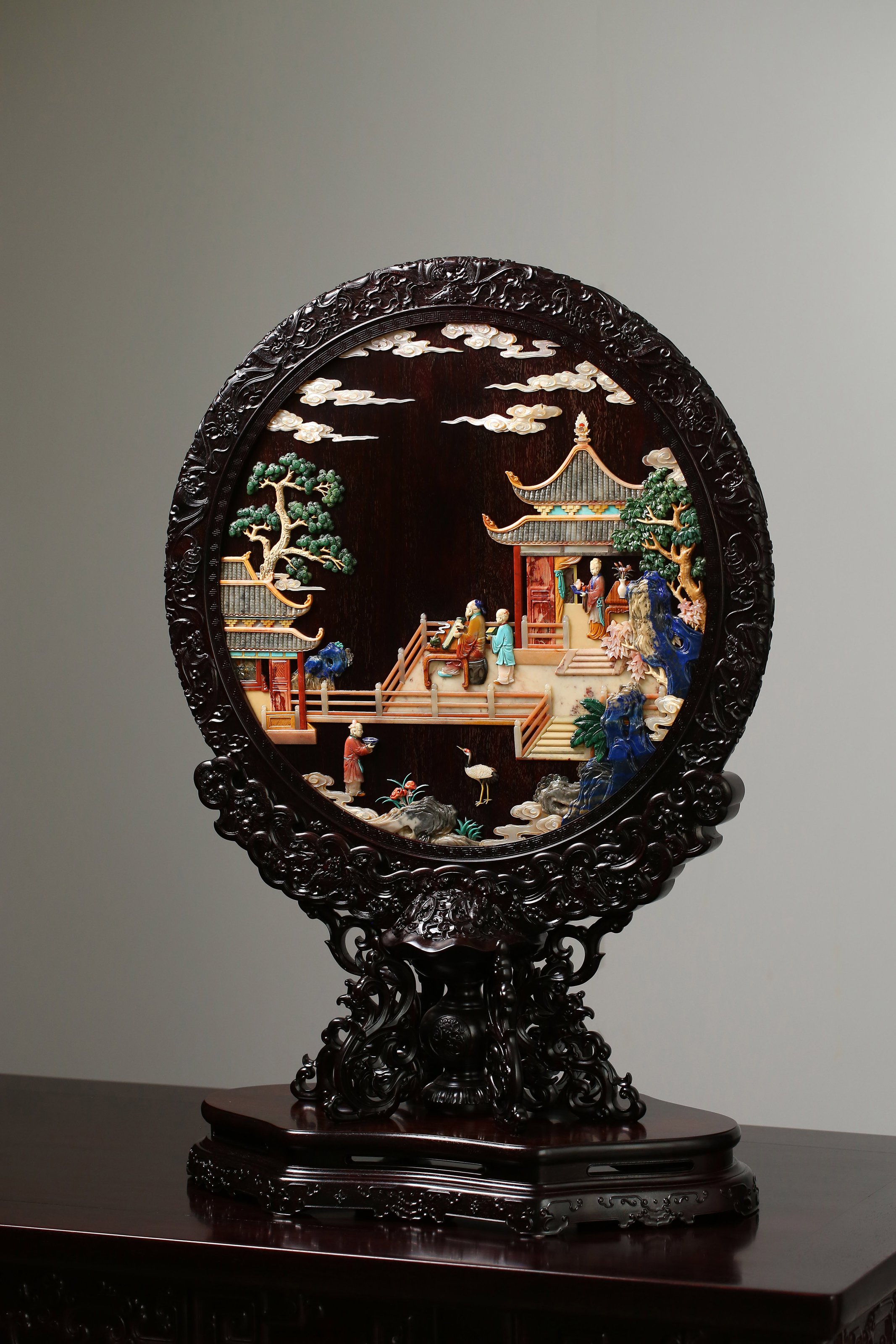原出至:曾为恭亲王所有的一对紫檀白玉圆光屏 估计拍卖3000万港元,佳士午秋拍总值 2.19亿美元