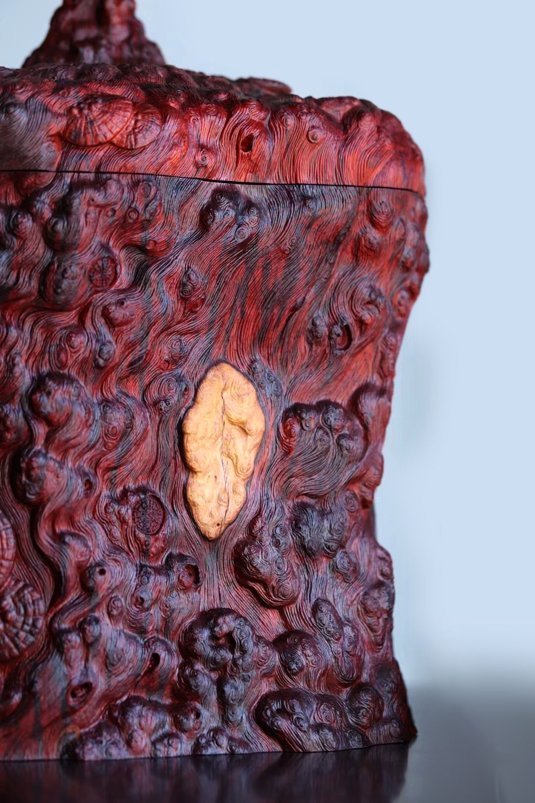 老料掏制,精镶内胆,密封性上佳。仓身以灵动线条,勾勒飘渺云水。游刃之间,衬托灵芝瑞气,意蕴无穷。