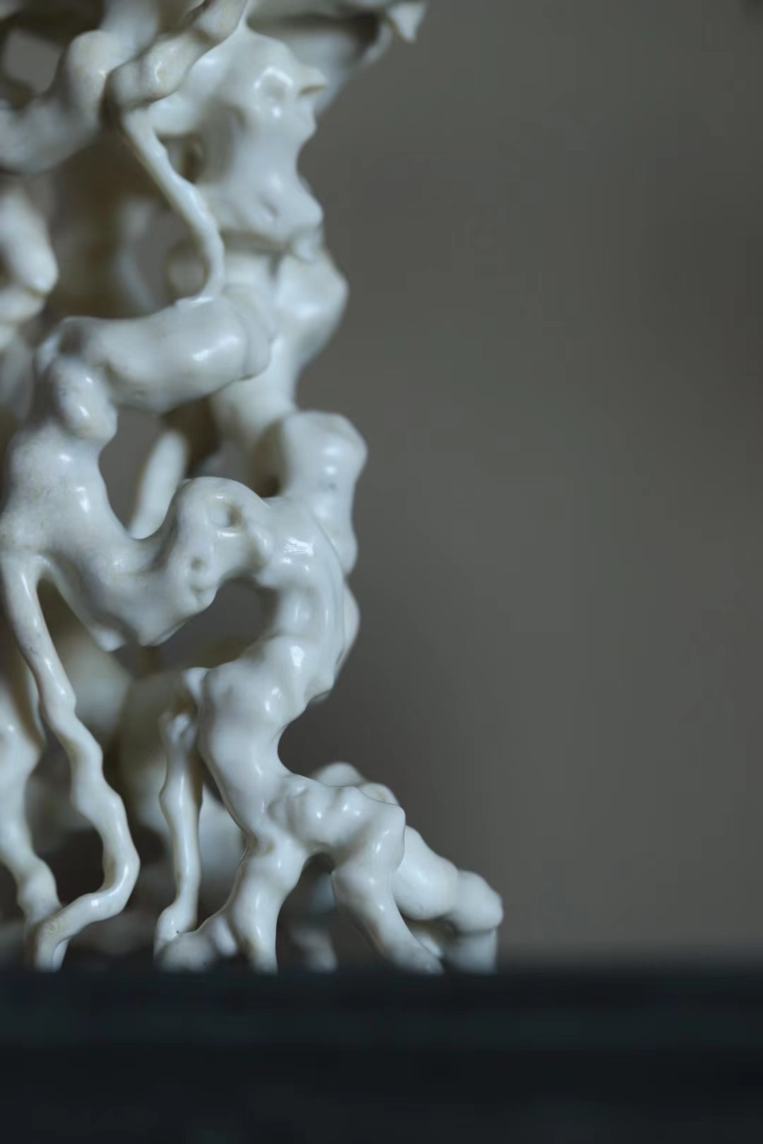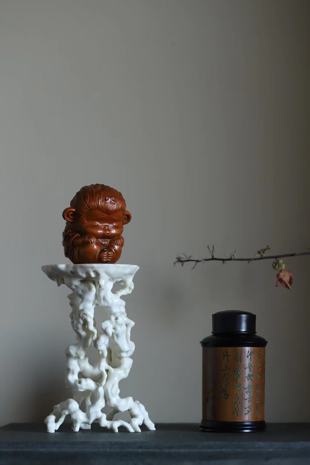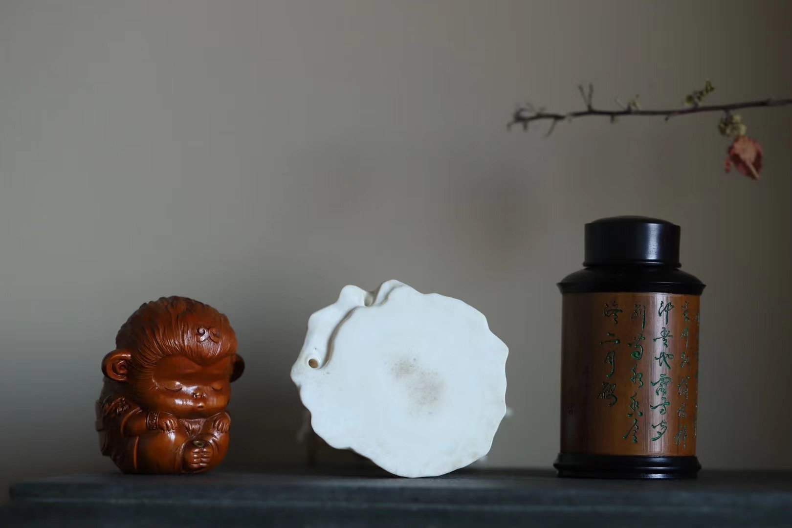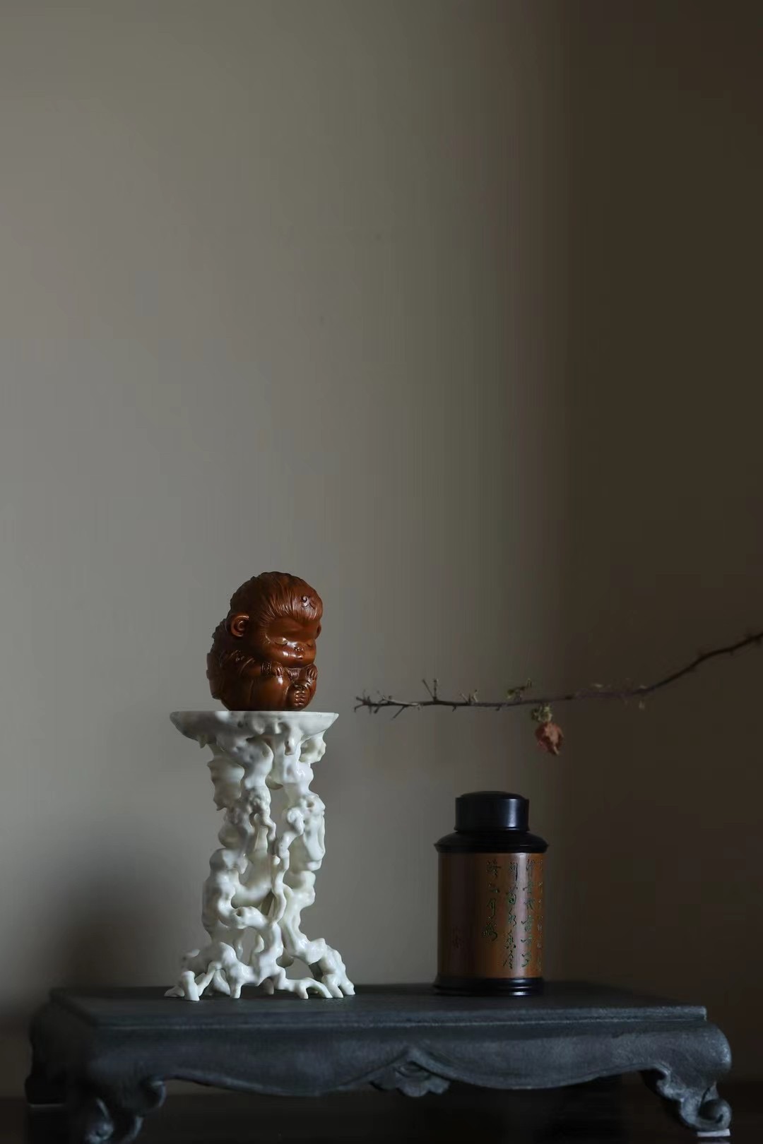 整料雕作,刀法细腻腴润,有堆云砌雪之韵,承置清玩,超然脱俗。
