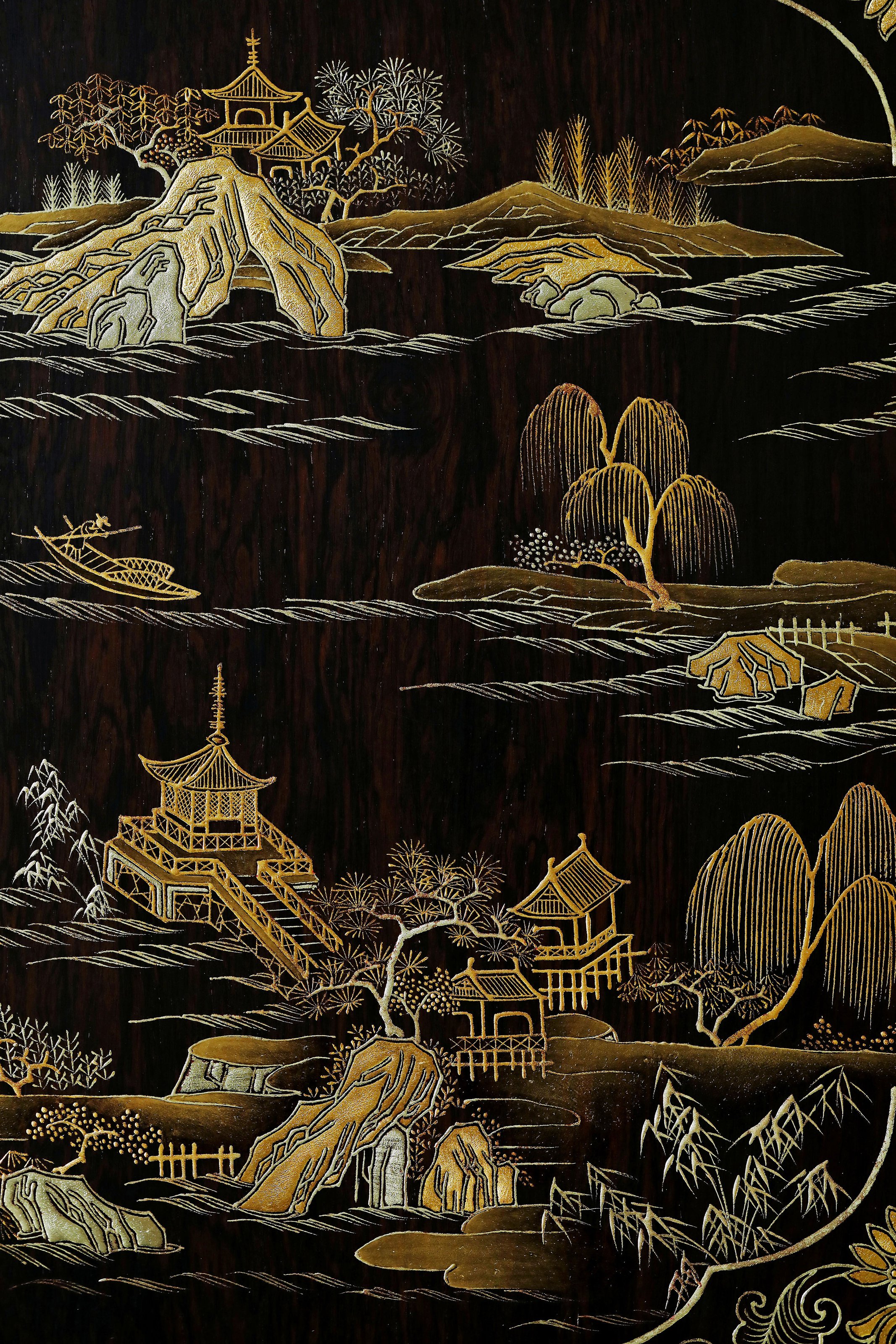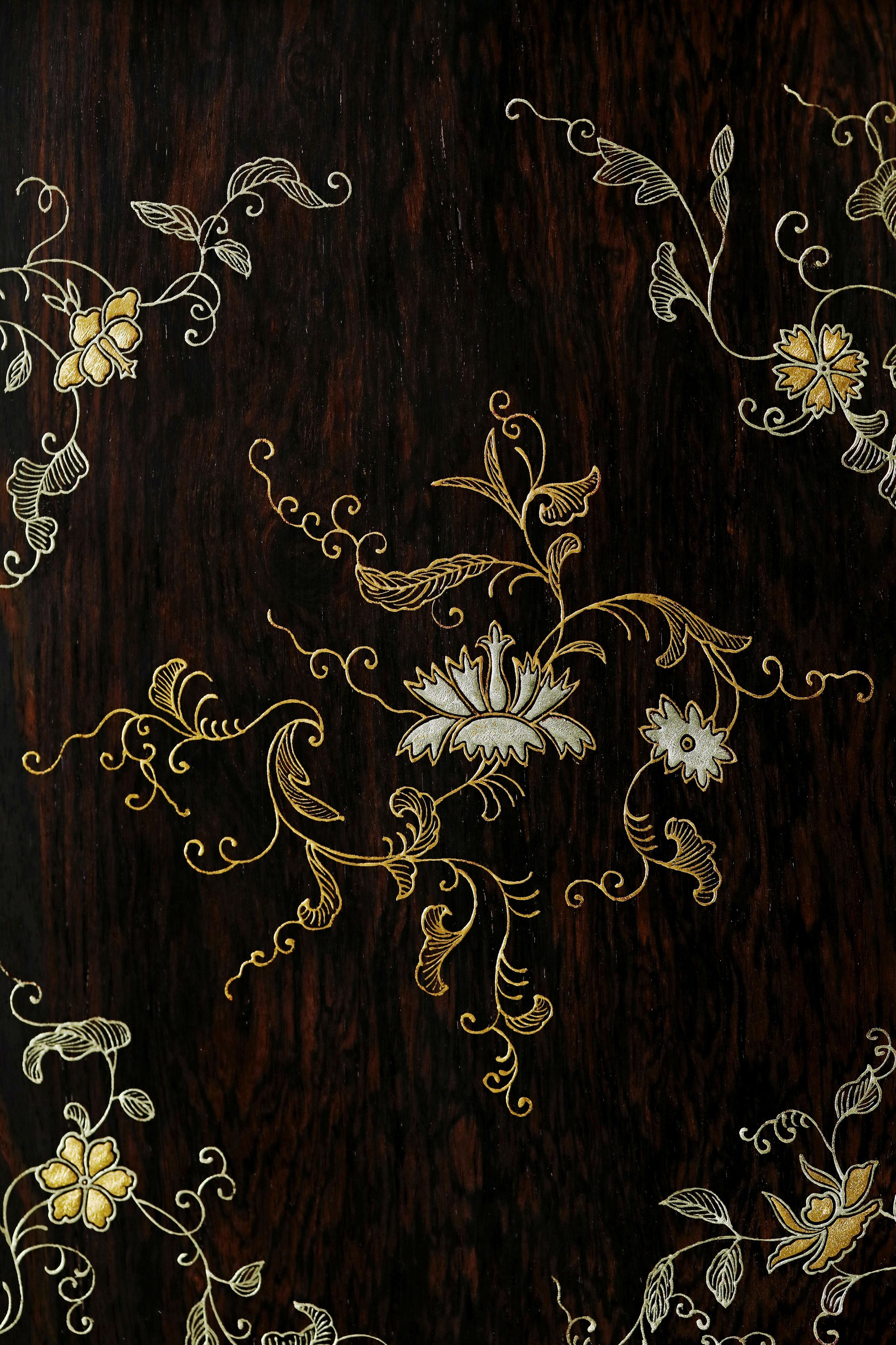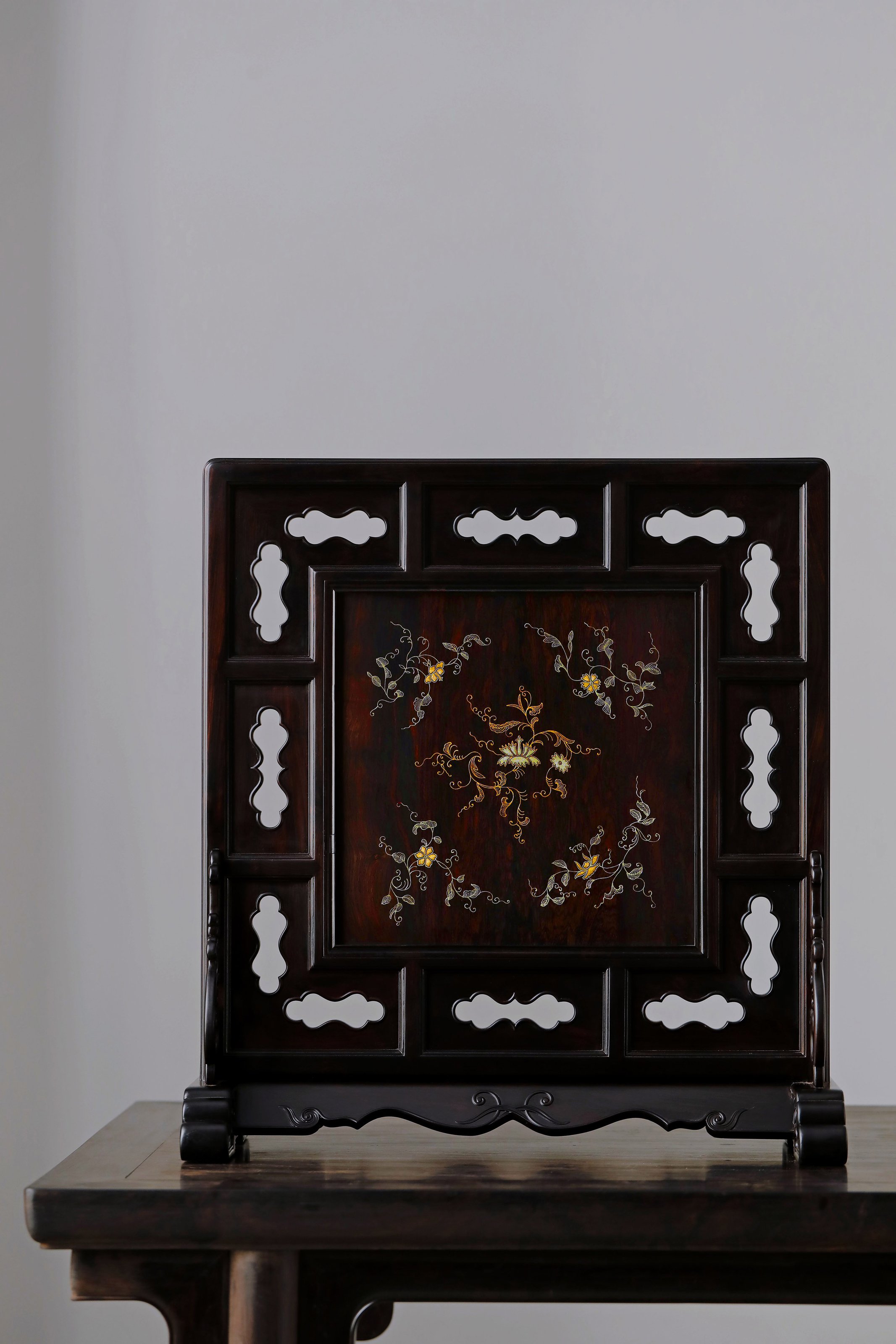 一面非遗技艺绘清供图,画面色彩饱满生动,一面绘西番莲纹,清雅方物,文房清供。