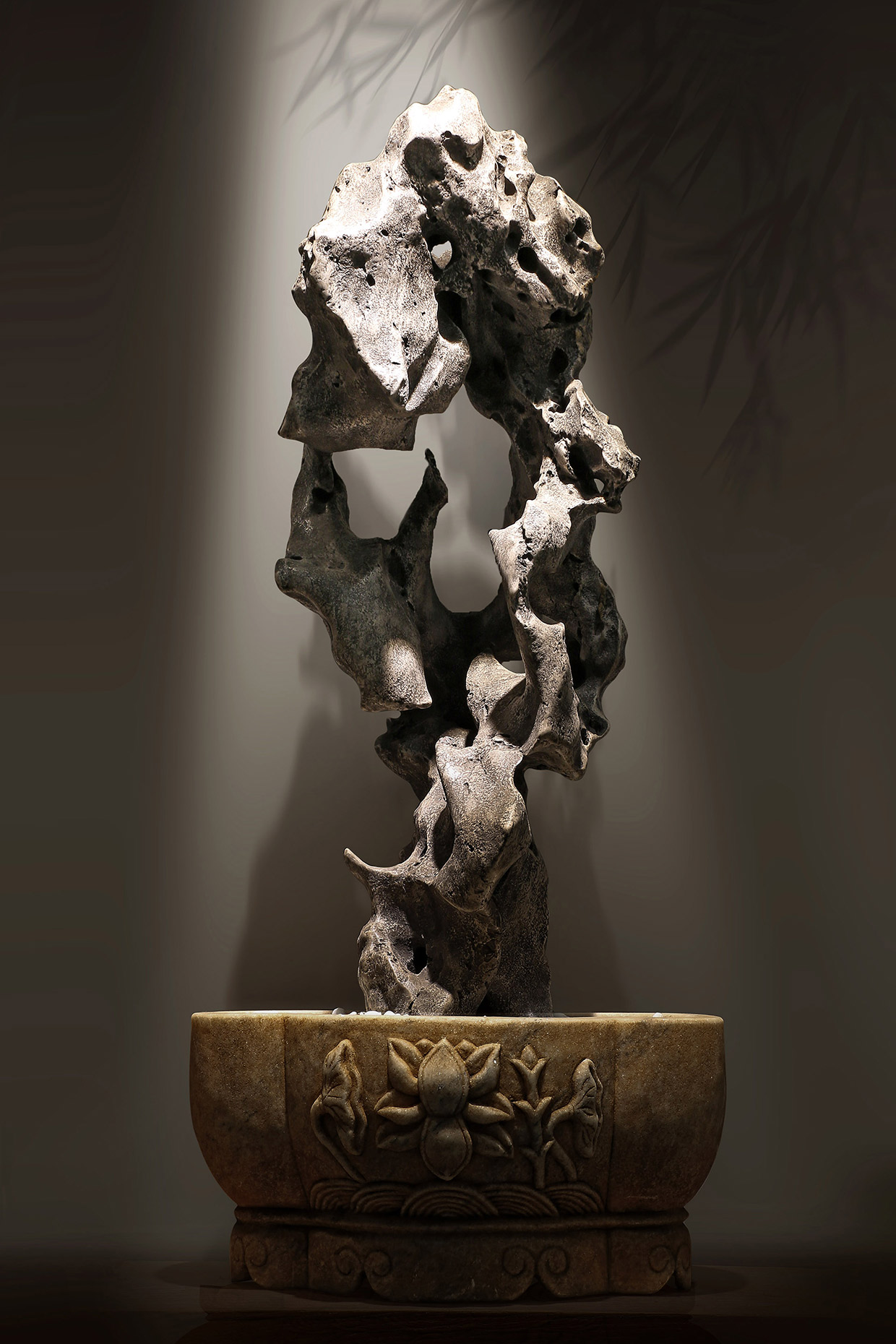 放下 材质:太湖石 尺寸:连盆整体高约1米 东晋诗人陶渊明归返田园以后,以耕作赏菊赋诗为乐,身边有巨石如砥、纵横丈余,相传他每醉辄坐卧其上,觉此石有醒脑提神之功效,便郑重其事地名之为“醒石”,因此被奉为开创赏石先河的鼻祖。后世程师孟曾为诗云:“谁知片石多情甚,曾送渊明入醉乡”,尽写旖旎风流之态。