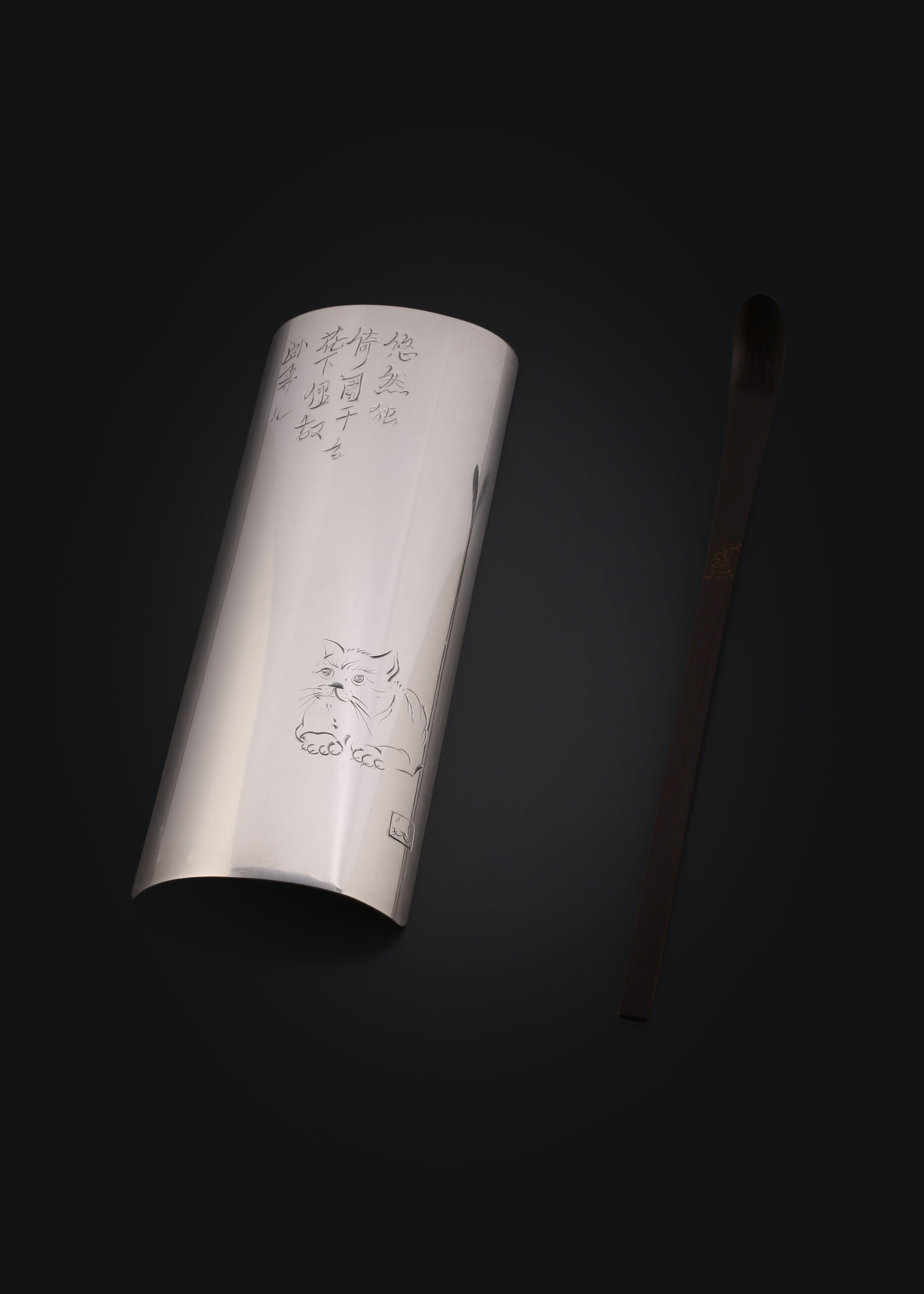 纯银茶则:克重:86克 长:16cm 宽:6cm 竹茶拨长:18.5cm