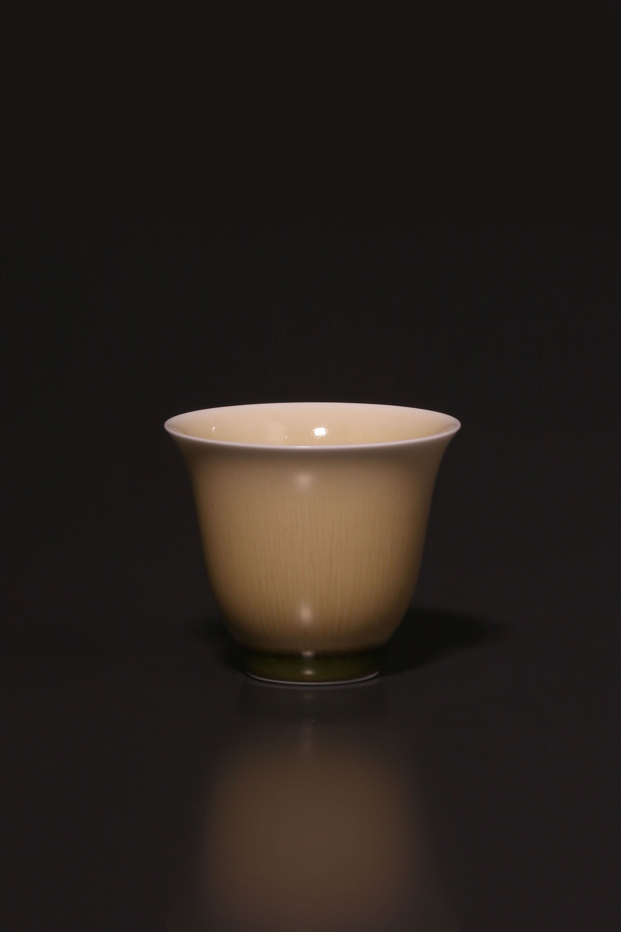 宋韵敞口杯色清如玉,温雅可人,如历经浮华后的内敛之美。宋代极高的审美,加上材料、技术的约束,必然显现出青色、极简、克制这种南宋瓷器的审美特征。