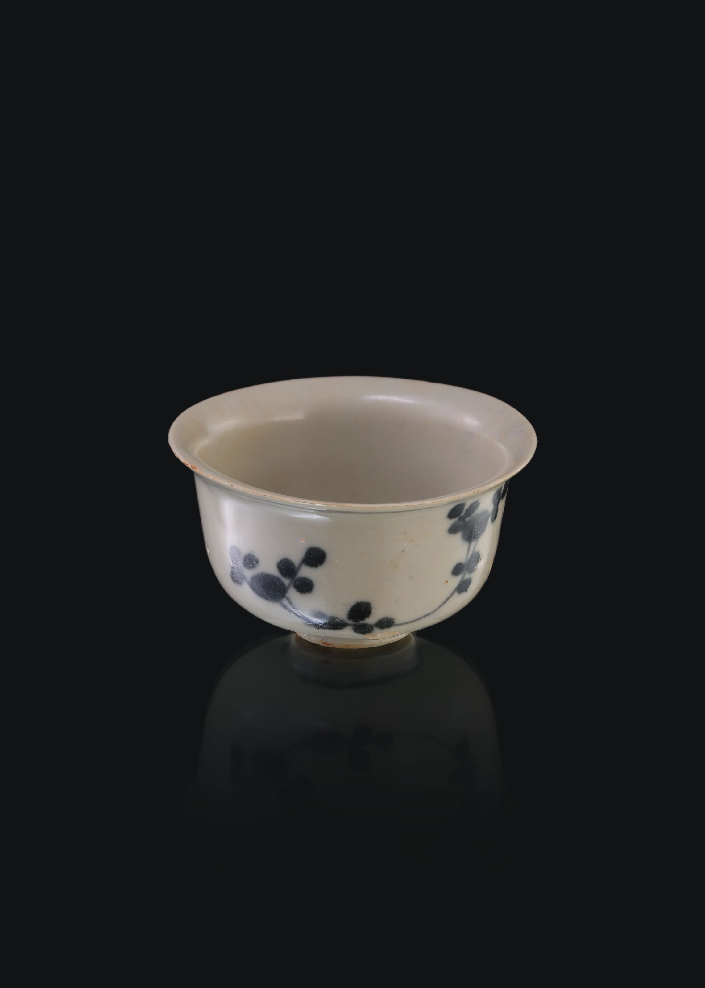 青花色调浓重,泛蓝黑,花卉写意,线条粗犷豪放。