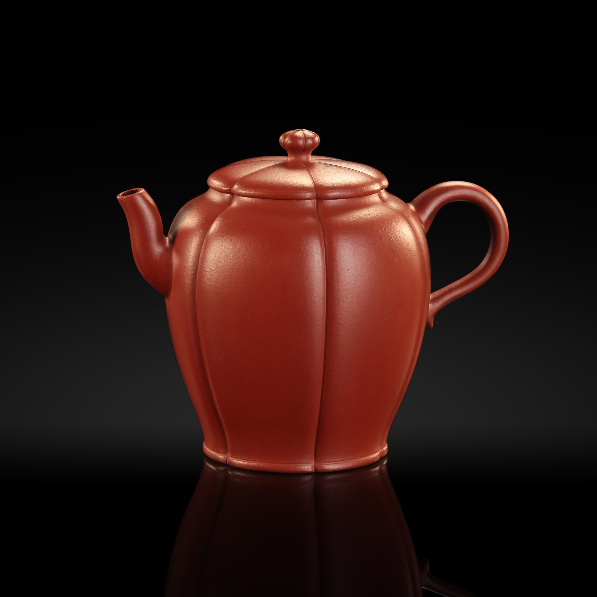 六瓣筋纹壶 容量:200ml 规格:长11cm高10cm 内口径5cm 此壶浑圆柔美,挺括丰腴,高雅光润,筋纹将壶钮、盖、身均分为六瓣,贯穿全壶,浑然一体,具有天人合一之美,淳朴自然,壶嘴挺拔有力与耳形把相呼应,方显此壶古朴典雅。