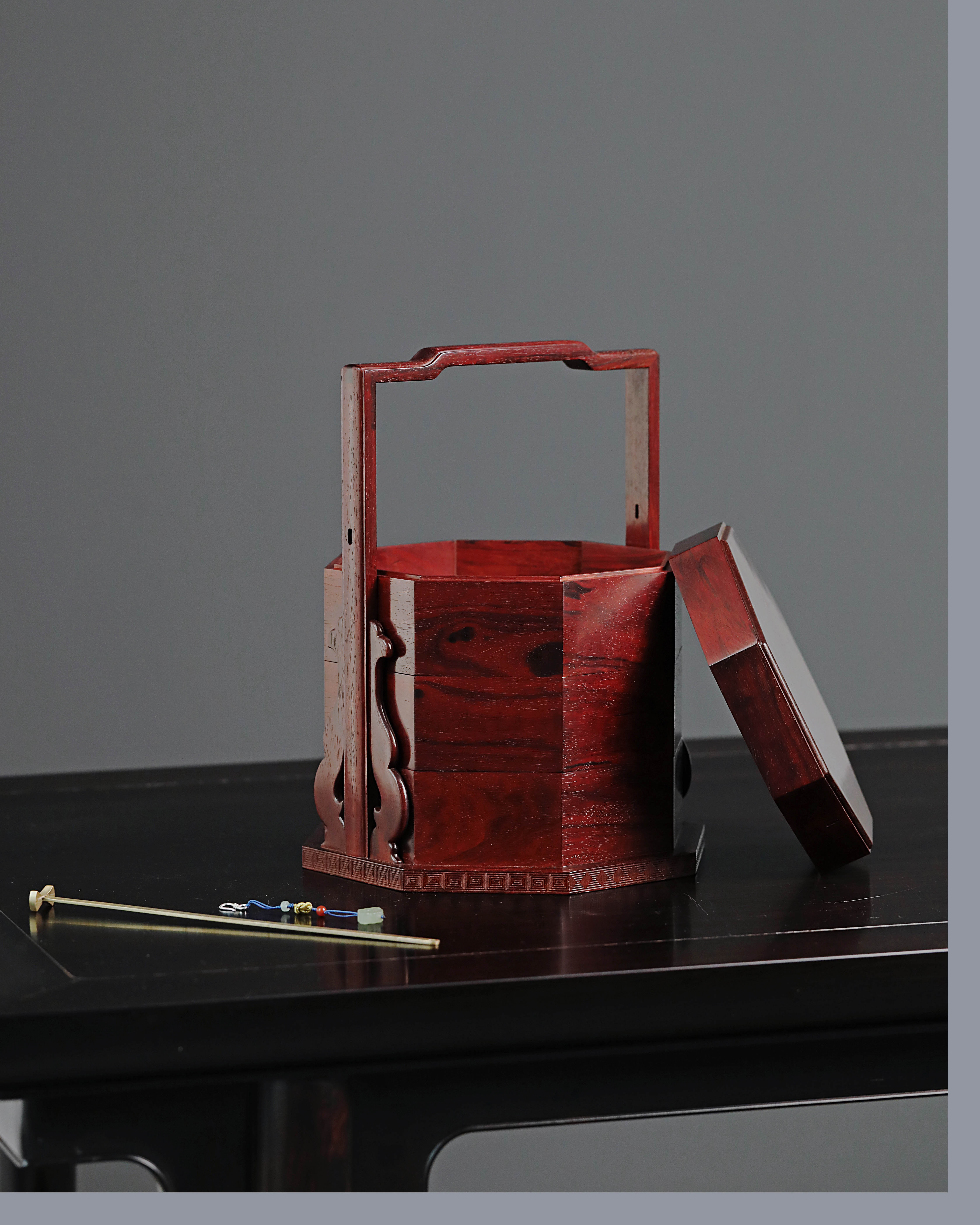 紫檀素面八方提盒
